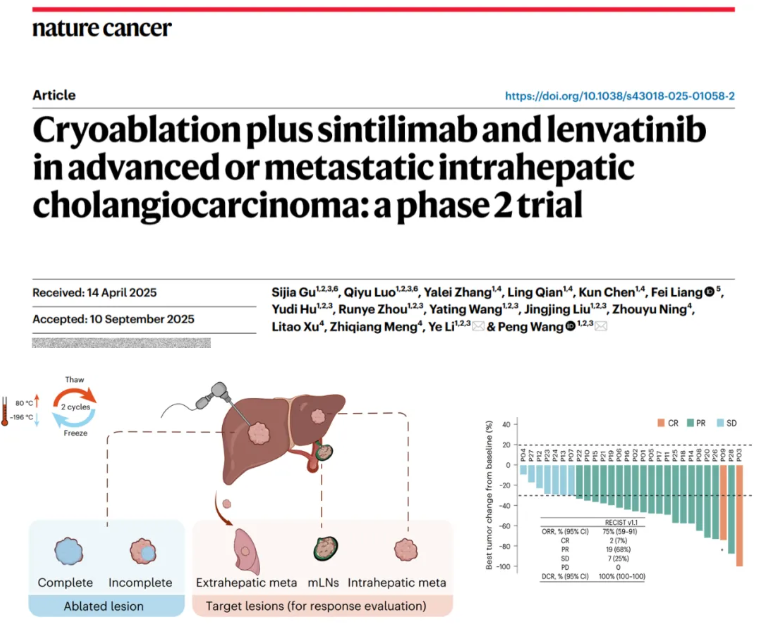 2025 年 10月 31 日 至 11 月 2 日,復(fù)旦中山腫瘤防治中心學(xué)術(shù)會(huì)議暨上海市化療質(zhì)控中心培訓(xùn)在上海隆重成功舉辦。在肝膽腫瘤局部治療新進(jìn)展分會(huì)場(chǎng),復(fù)旦大學(xué)附屬中山醫(yī)院王鵬教授發(fā)布了晚期肝內(nèi)膽管癌 “CASTLE 方案”,這一全新治療方案實(shí)現(xiàn)了療效的跨越式提升,將晚期肝內(nèi)膽管癌二線治療有效率從 5% 大幅提高至 75%,相關(guān)研究成果近期已發(fā)表于國際頂級(jí)學(xué)術(shù)期刊《Nature Cancer》,得到全球?qū)W術(shù)界的高度認(rèn)可。該方案的核心創(chuàng)新點(diǎn),在于將復(fù)合式冷熱消融技術(shù)與免疫治療深度結(jié)合,成功實(shí)現(xiàn)腫瘤綜合治療 “1+1>2” 的突破,為晚期膽管癌患者帶來新希望。
